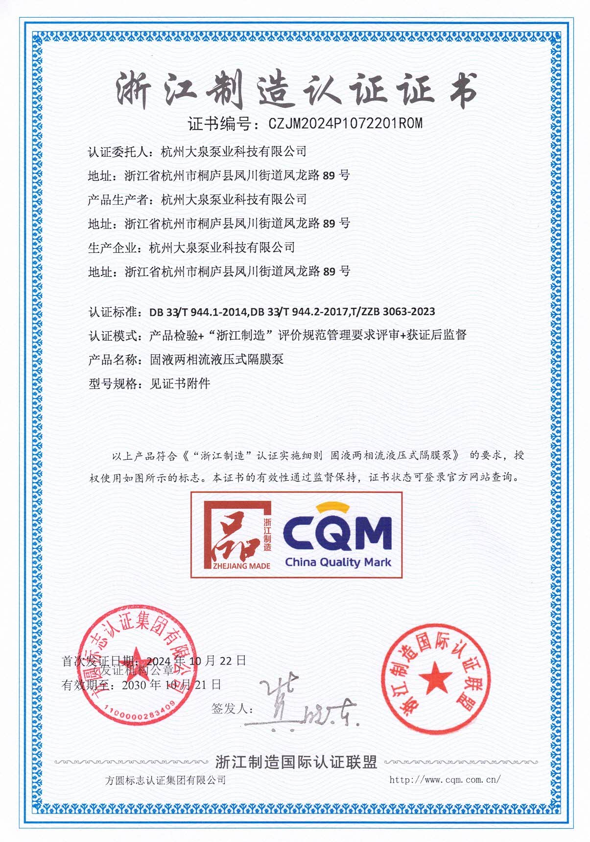 公司于2015年5月通過IS09001-2000國際質量管理體系認證,并獲得了“國家級高新技術企業(yè)”、“浙江省科技型企業(yè)”、“浙江省工商企業(yè)守合同重信用單位”、“桐廬縣著名商標”“品字標浙江制造認證”等榮普稱號。