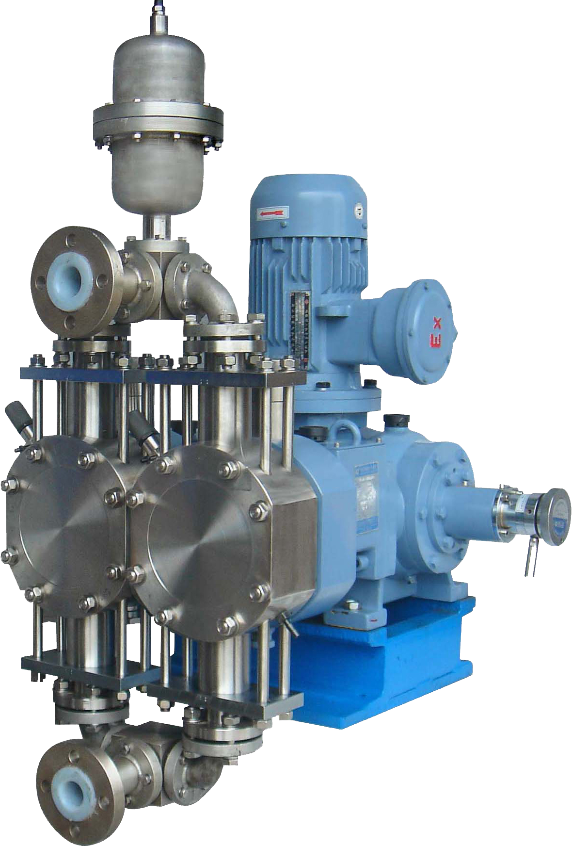 液壓隔膜式計量泵,在輸送介質(zhì)過程中,具有保證絕對不漏的特點,最適宜輸送易燃、易爆、易揮發(fā)、易沉淀結(jié)晶、放射性、無自潤性、強腐蝕、劇毒以及昂貴的特殊介質(zhì),是石油化工流程中理想的不可缺少的液體物料輸送設備。